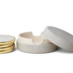 These shagreen-covered coasters with a suede underside are ringed in rich gold-toned brass. Use them to add a touch of glamour to entertaining.