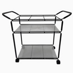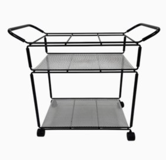 This  Mathieu Mategot Style Metal Bar Cart is an elegant transitional bar cart that would fit into any space