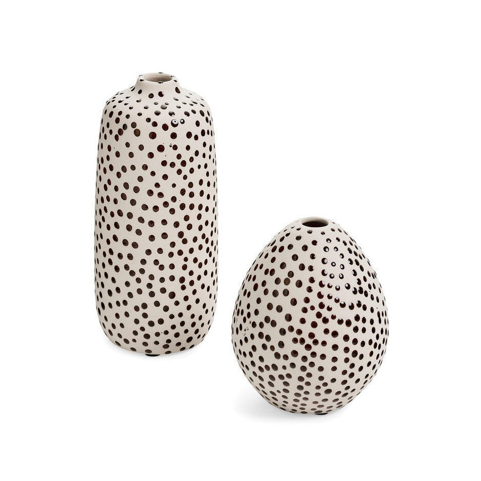 These polka dot bud vases are fun and simple additions for any space. Made of clay.
