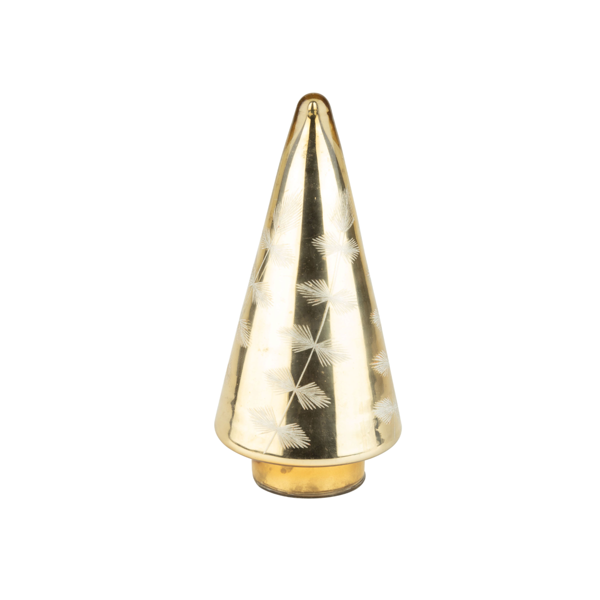 These gilded glass decorative trees have a beautifully etched leaf pattern that gives them a unique and delicate look. Perfect for the holiday season!
