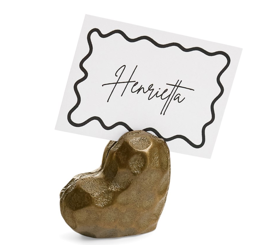 S/6 Antique Brass Heart Place Card Holders