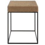 Showcasing sleek lines with a rustic twist, this accent tale displays natural braided rope atop a streamlined matte black iron base.