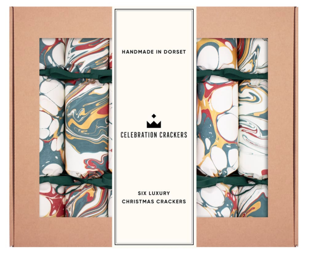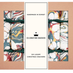 The hand marbled print, paired with recyclable gross grain ribbon bows, turn each cracker into a visual delight, promising to add a burst of joy to your gatherings.