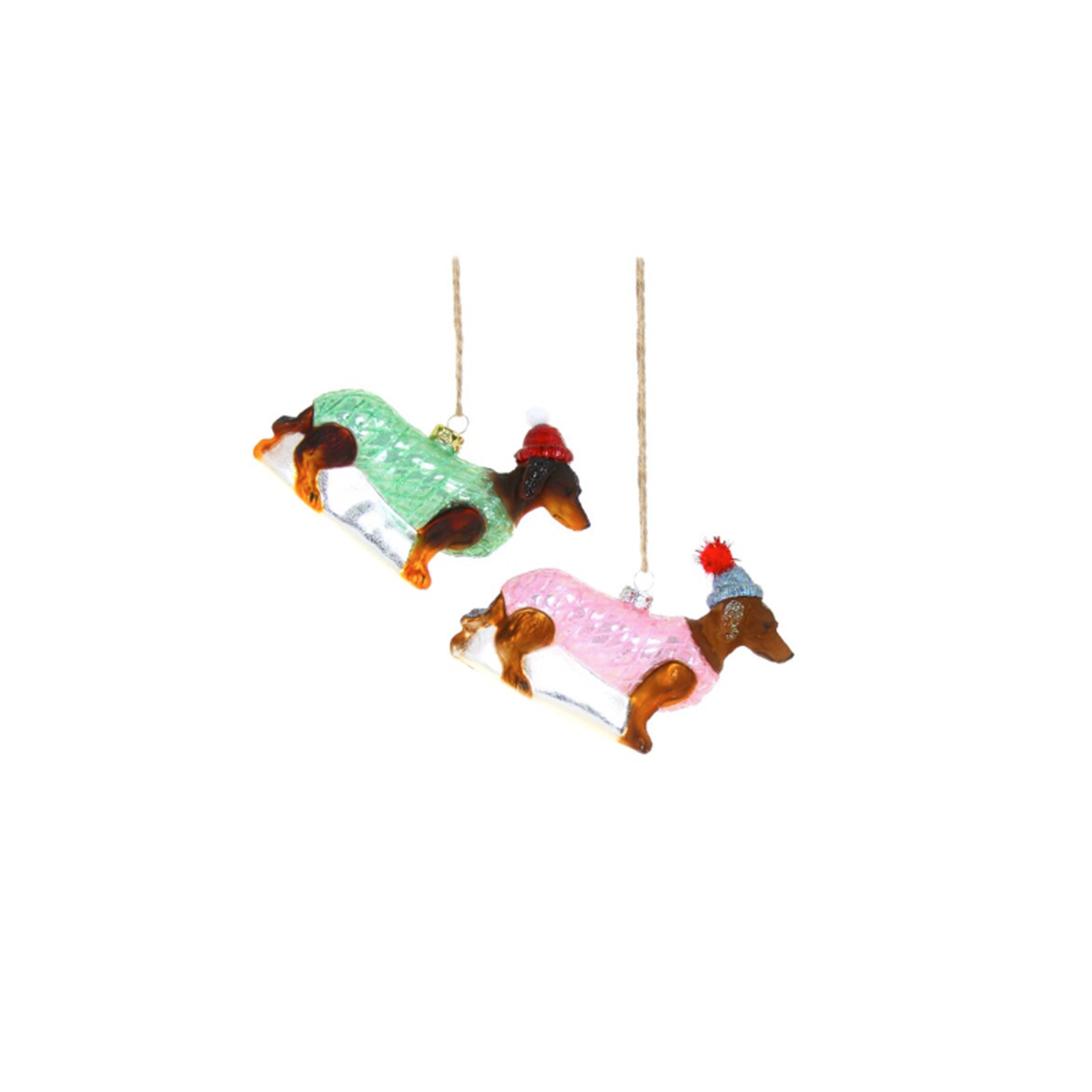 These Winter Dachshund Ornaments are ideal for any Dachshund lover's tree. Available in two colours.